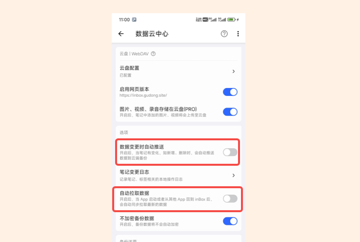 在手机端写笔记时,首先拉取一次最新的数据,然后记笔记,记完后,再手动推送数据,这样就可以让远端数据保持最新。如果平时不用网页版,则不需要这样操作