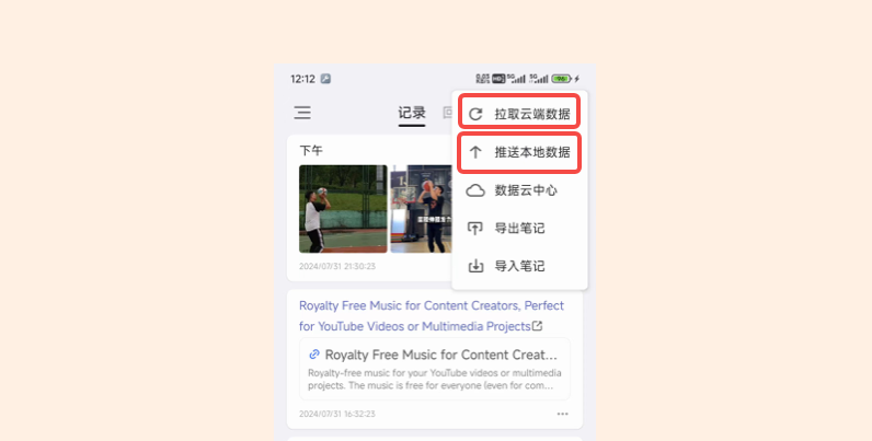 当在网页端发布完笔记,想要在手机上查看,那么就先手动拉取一次数据,既可获取到最新的网页端的改动。
