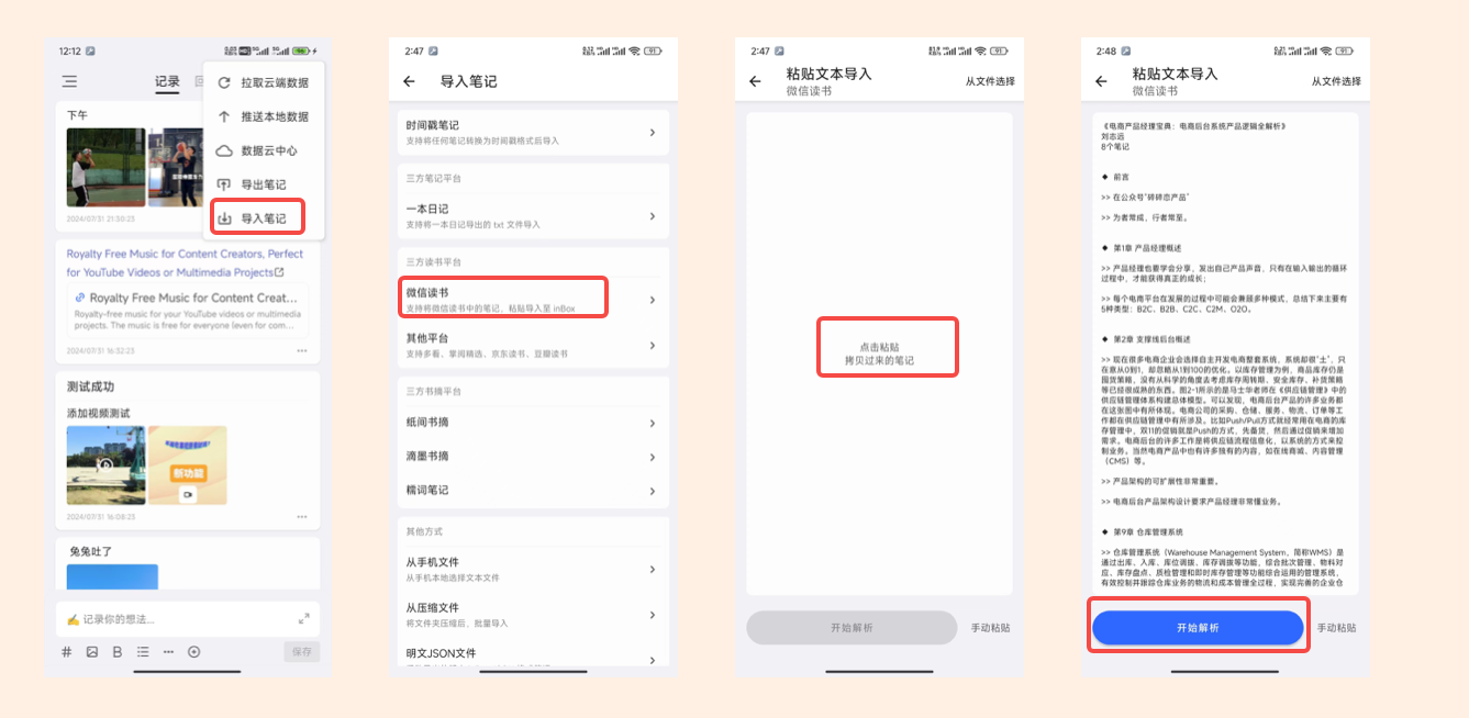 打开 inBox,点击首页右上角菜单,选择导入笔记