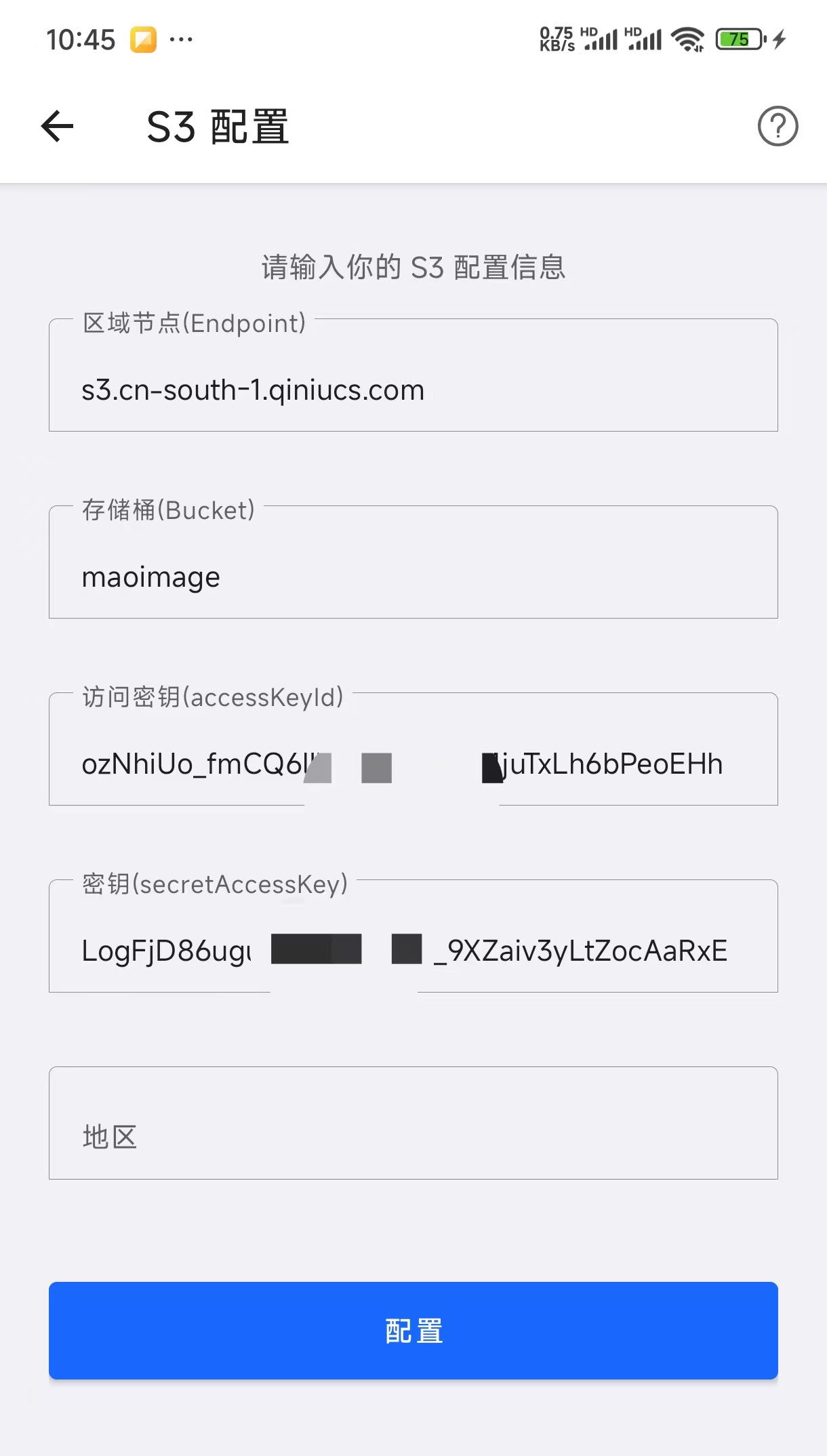 - 地区(Region):S3 服务所在的地区。 可不填。