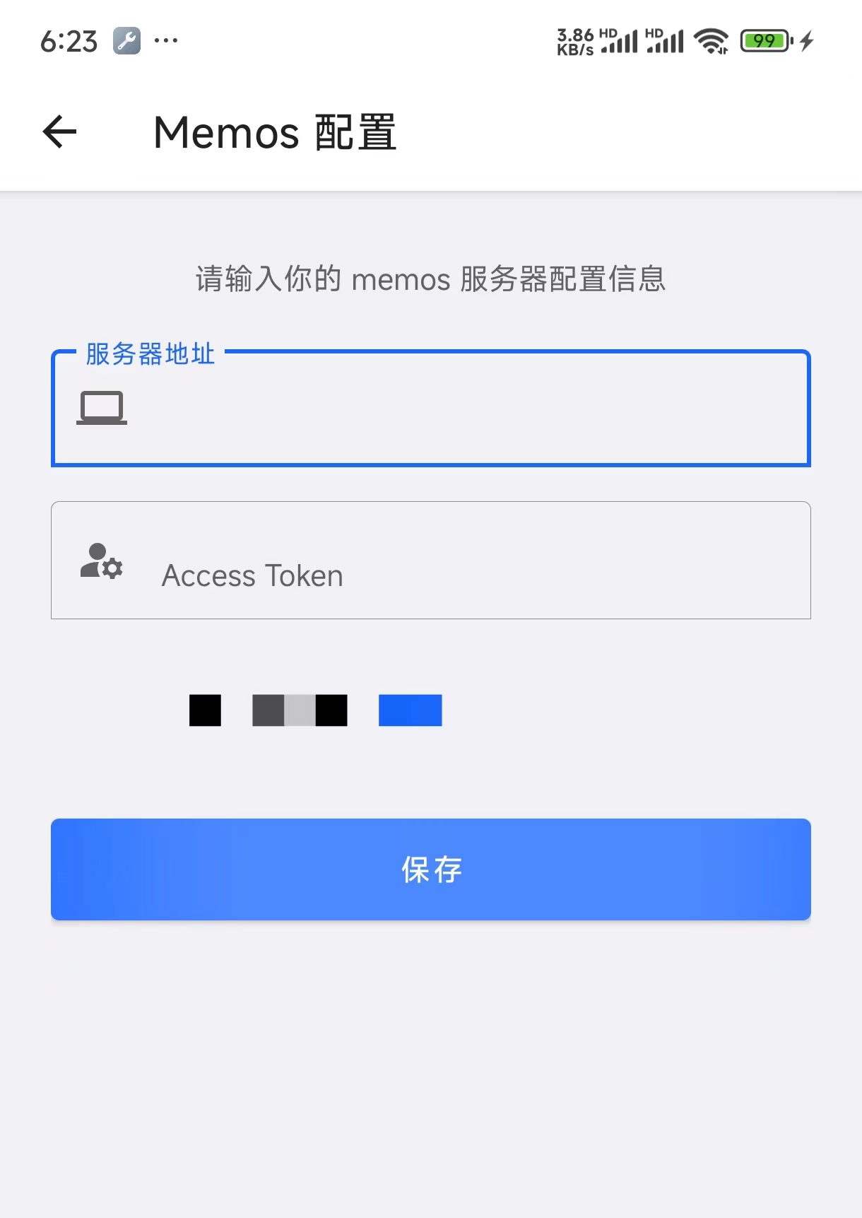 3、打开配置页面,输入 memos 的服务器地址和 token,点击保存即可