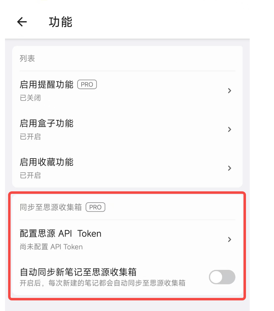 Tip: 同步到 思源笔记 为 inBox PRO 功能验。