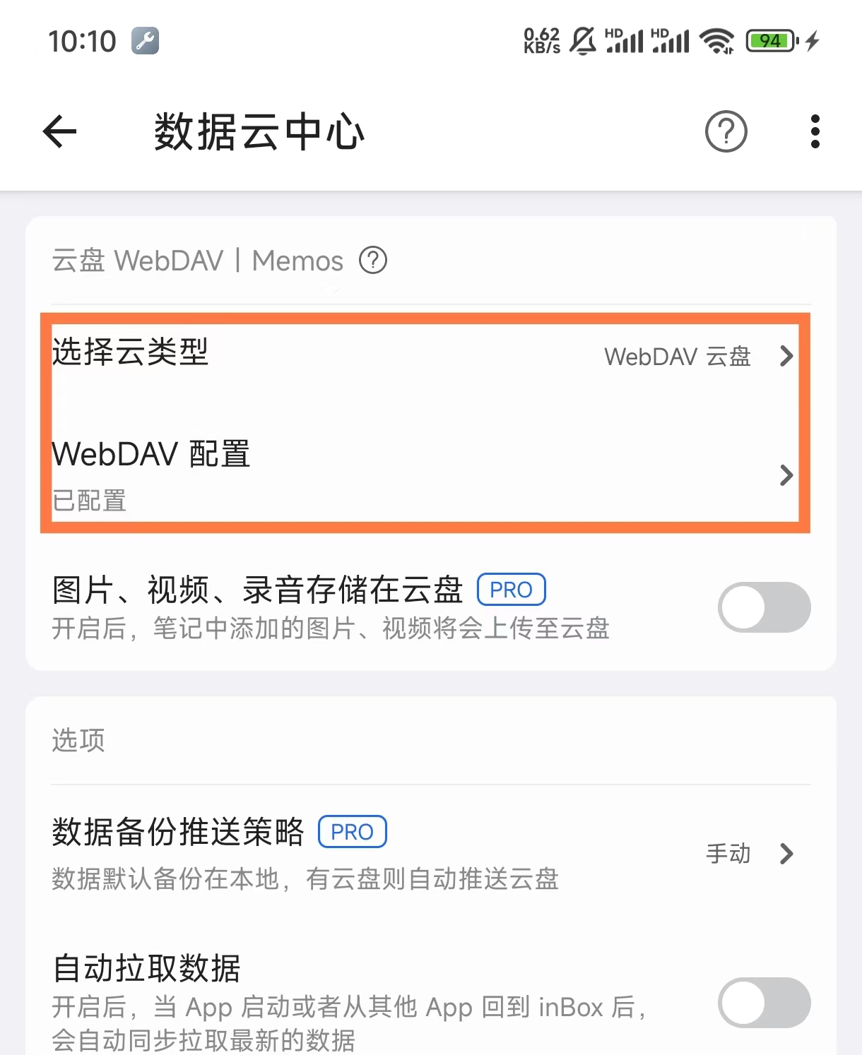 2、网页版需要配合个人云盘使用(推荐使用坚果云),需要在手机数据云中心进行配置。
