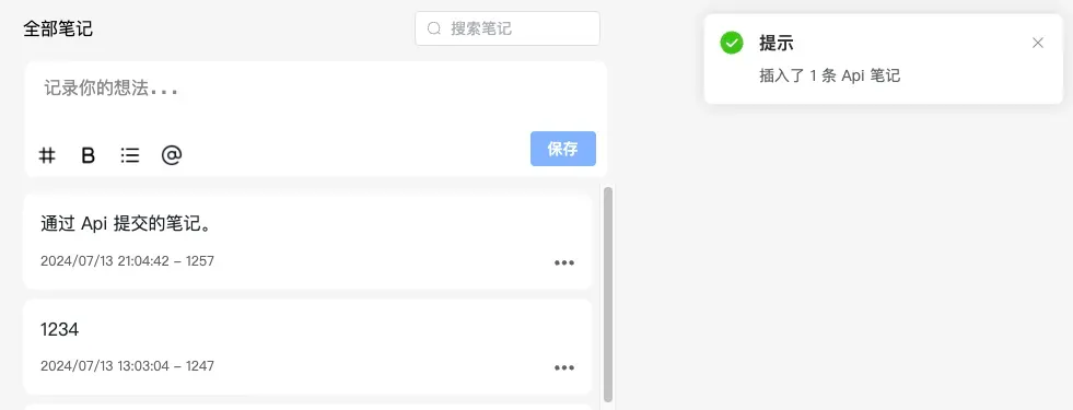 Api 是 inBox 对外开放的一个能力,任意平台只要支持 inBox 的 Api ,就可以将一段文本同步到 inBox 中。目前 uTools、纸间书摘等都已经支持了 inBox 的 Api,但之前通过 Api 发送笔记后,只能打开 App 才可以看到通过 Api 提交的笔记,本次网页版本中也已经支持了同步 Api 笔记,每次打开网页版执行刷新时,就会将 Api 发送而来的笔记进行同步。